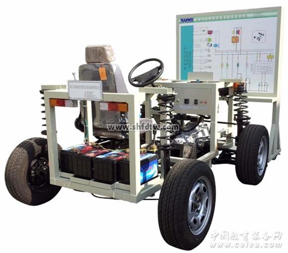 鋼制臺架上安裝有全套純電動動力系統部件,器件包括電動汽車電動機、變速器總成、電動汽車控制器、4個12V/65AH蓄電池組成的蓄電池組等真實的汽車部件,整體整體結構采用噴塑處理,通過與控制電路系統配套可實行純電動汽車的正常啟動、加速和減速的過程,能真實的觀測純電動汽車啟動、前行、后退、加速、充電等工況下的運行情況,了解純電動汽車的工作原理與結構。
