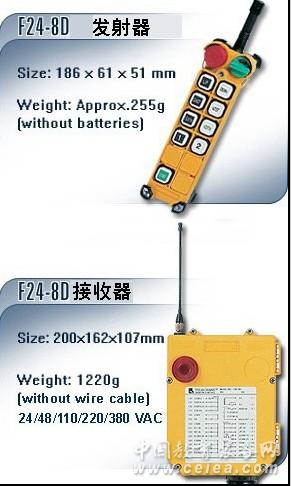 控制距離:可達100米 發射器電源:直流3V(2節堿性5號電池可使用1個月) 接收器電源:交流380V/220V/48V可選擇(50/60HZ),或直流12V/24V
