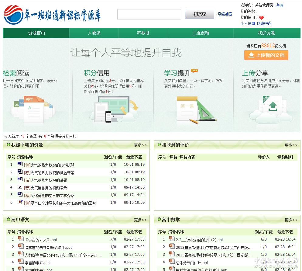 -------------------------------------------------------------------------------- 產(chǎn)品特點(diǎn) • 嚴(yán)格遵循《基礎(chǔ)教育教學(xué)資源元數(shù)據(jù)規(guī)范》國(guó)家標(biāo)準(zhǔn)。 • 內(nèi)容豐富:人教版、北師版、蘇教版、三維視頻、東師版、譯林版、外研社、科教版、粵教版、湘教版等版本。 • 表現(xiàn)形式多樣,用戶上傳的文檔自動(dòng)轉(zhuǎn)換成在線預(yù)覽模式,方便閱讀,下載依然是可編輯的文檔。 • 引入EMIF規(guī)范實(shí)現(xiàn)與城域網(wǎng)的資源交換,達(dá)到了資源共建共享。 • 可實(shí)現(xiàn)跨區(qū)域、跨庫(kù)的資源檢索。 • 提供個(gè)性化的資源預(yù)訂。 • 嚴(yán)格的資源審核和授權(quán)機(jī)制體現(xiàn)的系統(tǒng)的安全性。 • 分布式存儲(chǔ)和管理增強(qiáng)了系統(tǒng)的穩(wěn)定性。 • 多緯度的資源呈現(xiàn),友好的用戶界面體現(xiàn)了系統(tǒng)的易用性。