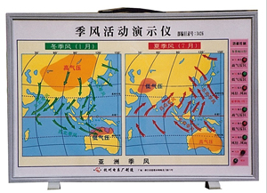 大范圍地區的盛行風隨季節改變現象的風稱季風。與生活在該地區的人們密切相關。所以,季風環流是高中地理—《全球大氣環流》章節中一重要知識點。通過本內容的教學,應該使學生了解和獲得“季風的成因”、“ 東亞季風”、“ 南亞季風” 各自特征及相關的地理知識概念。季風活動演示儀是國家教育部2000年6月制定的《中學理科教學儀器配備目錄》要求中學必配的新增教學儀器。我廠按照這需求,以《中學地理教學大綱》的要求和教科書的知識結構為產品設計的指導思想,研制了本產品,符合學校地理教學演示實驗之用。