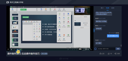 5月12日-5月14日為培訓的第一階段,自愿報名參加培訓的老師人數高達1000人。培訓內容根據當前開展線上教育情況和提升課堂教學質量兩方面實際進行了設計,授課教師圍繞交互式多媒體設備互動課件制作基礎、資源素材獲取、互動課件制作技巧、課件排版、班級管理及微課錄制六個板塊展開。