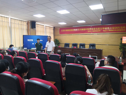 “本次培訓(xùn)我們邀請(qǐng)到了教育信息化廠家希沃公司過(guò)來(lái),希望大家都能夠不斷學(xué)習(xí),跟上信息化時(shí)代的步伐,為我們海棠區(qū)教育事業(yè)更上一層樓獻(xiàn)出一份力。”教育局石副局長(zhǎng)在開(kāi)場(chǎng)致辭中說(shuō)道。