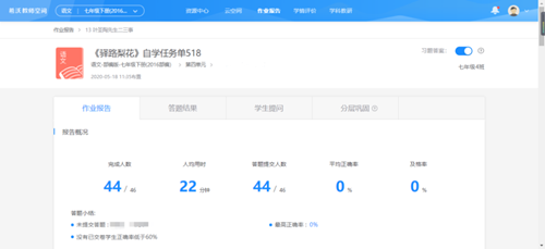在學(xué)習(xí)任務(wù)單的驅(qū)動(dòng)下,學(xué)生自主完成任務(wù),并拍照上傳。教師在教師空間作業(yè)報(bào)告可以清晰了解作業(yè)上交及質(zhì)量情況。