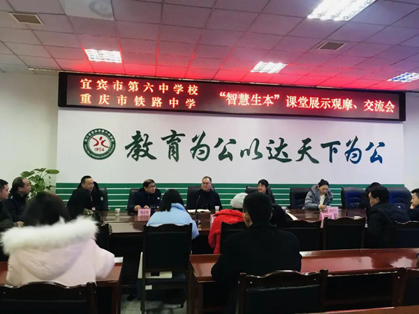 百年大計,教育為本。教育大計,教師為本。為了適應時代發展的需要,努力提高教師專業技能發展,引導課堂教學改革,借助信息技術智慧課堂幫助老師們轉變課堂觀念、改進教學方式,2021年1月7日,希沃陪同重慶市鐵路中學校由廖正蘭副校長帶隊的7名優秀領導及教師一起來到宜賓市第六中學校,共同參觀了校際展示課,并進行智慧課堂交流探討活動。