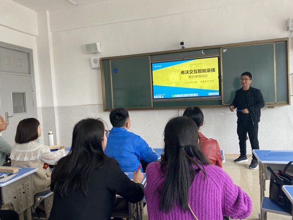 對此,希沃講師賴勉在培訓會現場詳細地為老師們講解了希沃錄播的本地錄制功能和異地互動功能。為了讓老師們更直觀地了解這些功能,賴勉通過遠程連線的方式給其他學校的師生上了一堂別開生面的地理課。