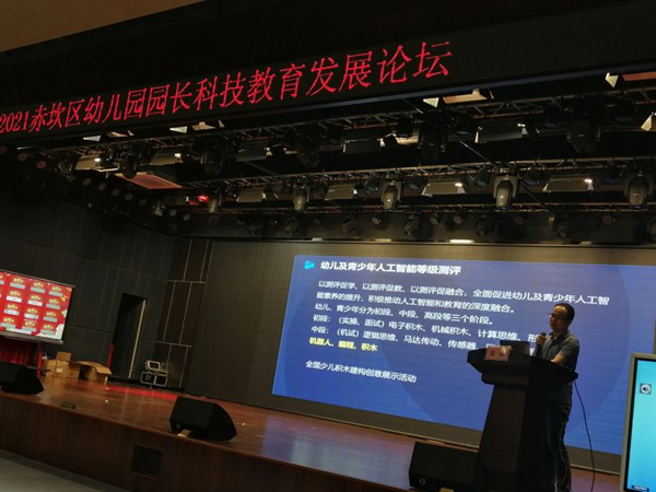 為了加強赤坎區幼兒園科技教育建設,提高區內各幼兒園園長的科技教育意識、技術和水平,5月12日上午,赤坎區教育局和區教師發展中心,聯合中國國際科技促進會青少年人工智能教育普及工作委員會、嶺南師范學院,在華南師范大學附屬湛江學校,成功舉辦了2021年赤坎區幼兒園園長科技教育論壇。科促會智工委湛江中心吳華主任出席并主持了本次論壇,赤坎區一百多所幼兒園,近二百名園長和骨干教師,參加了本次論壇活動。