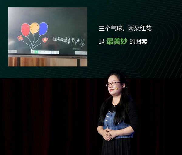 湖北省浠水縣特殊教育學校的徐偉老師,使用希沃白板的畫筆工具及課堂游戲等互動功能,幫助身心缺陷的孩子理解課堂內容、掌握知識。母親節當天,一位腦癱孩子使用希沃白板顫顫巍巍地為徐偉老師畫起了紅花和氣球,并帶領大家喊:“祝老師母親節快樂”,這事讓徐偉老師感動不已并銘記于心。