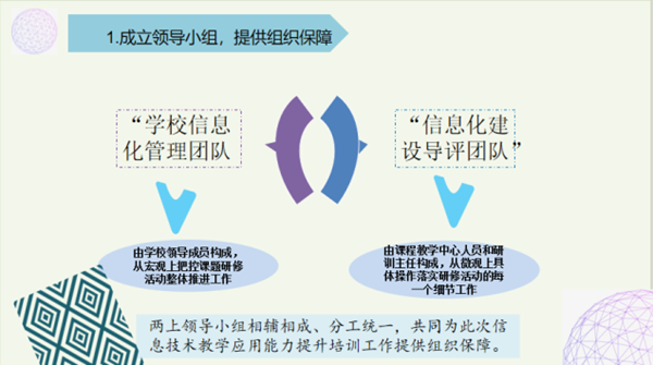 北京師范大學石家莊附屬學校張萌老師,針對本校教師信息化能力培養與工作技能提升作出分享和總結。