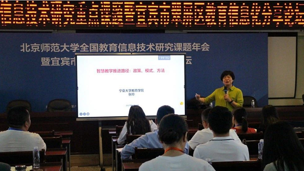 接著,寧夏大學教育學院教授張玲,為大家帶來《智慧教育推進路徑:政策、模式、方法》專題講座。張教授通過梳理中國互聯網發展的脈絡以及國家政策對教育變革的引領,分析了信息技術對教育發展的推動作用,指出要在探索信息技術與教育教學的深度融合過程,提升現代教育能力水平。張教授還對構建智慧教育生態框架進行了深刻的詮釋。