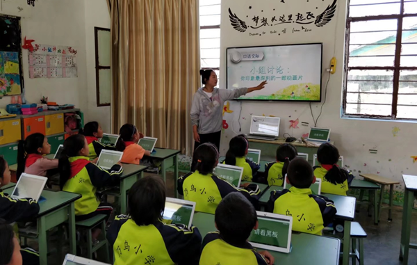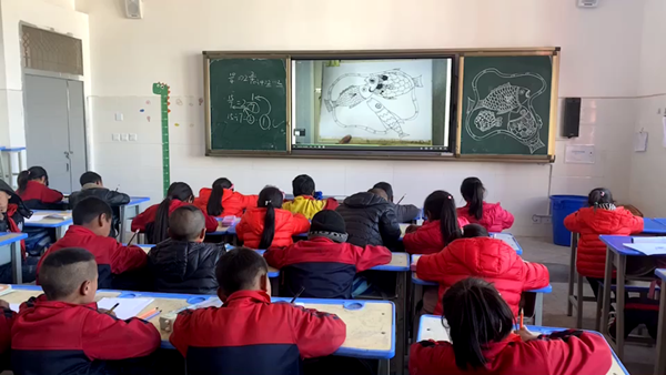 于是,曹本華充分發揮自身在教育信息化領域的優勢,決定深耕當地推廣“互聯網+教育”模式。曹本華沒有選擇條件最好的學校作為試點,而選擇了一所位于大山溝中的鄉村小學——乃烏村小。這個學校僅有一位教語文的胡老師和一位教數學的白老師以及校內三十多名學生。上午十點之前,學生總是到不齊,有的學生甚至不愿意到學校來上課。當老師們聽說要在這里開展“互聯網+教育”試點,他們非常高興。因為對于剛畢業的他們來說,這是一個成長的機會。于是,在當地領導和曹本華的協助下,乃烏村小引進了兩臺55寸大電視和希沃白板等教學工具。