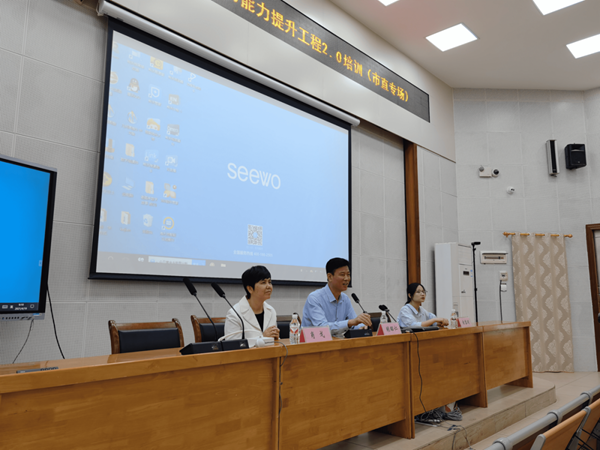 第一階段活動采用現(xiàn)場授課的形式,上午由區(qū)教育廳教授肖弋做2.0的內容培訓,杏壇導師分享教學模式,希沃高級講師協(xié)同進行實操指導;下午由希沃高級講師帶領老師們進行交互式課件制作的實操培訓。整個線下培訓活動使用希沃錄播設備全程直播,讓其他老師也能在線上參與觀摩學習。