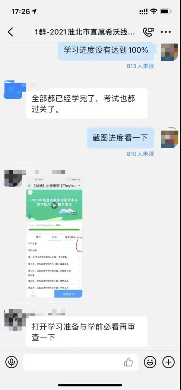 基于淮北市教師信息化水平不均的問題,希沃公司積極進(jìn)行線上課程開發(fā),為淮北市教師設(shè)定了專屬課程內(nèi)容,全面覆蓋初級(jí)、中級(jí)、高級(jí)各個(gè)階段,每階段后都有單元小測試,旨在保證教師學(xué)習(xí)后的效果并落地執(zhí)行應(yīng)用。希沃工作人員建立了12個(gè)區(qū)域性線上交流群全程陪伴督學(xué),便于及時(shí)答疑提高教師學(xué)習(xí)積極性。隨后,越來越多的老師們給我們分享獲得結(jié)業(yè)證書的喜悅。
