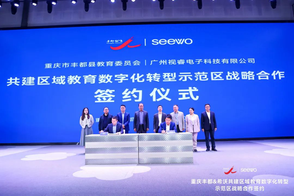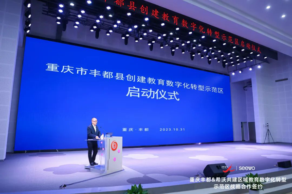 10月31日,重慶豐都縣教育委員會(huì)與廣州視睿電子科技有限公司(希沃),在重慶謝家灣學(xué)校豐都幸福小學(xué)舉行共建教育數(shù)字化轉(zhuǎn)型示范區(qū)戰(zhàn)略合作簽約暨重慶市教育綜合改革試點(diǎn)項(xiàng)目(研究課題)啟動(dòng)儀式。