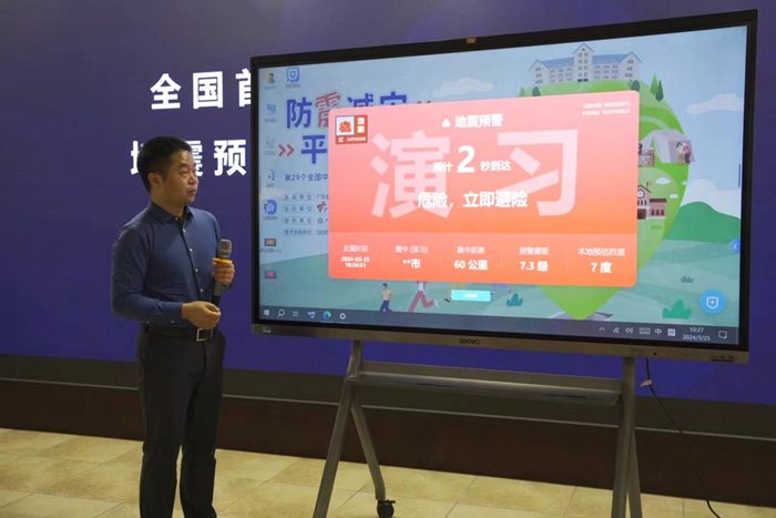3月25日,正值第29個全國中小學生安全教育日之際,在廣東省地震局、廣東省教育廳指導下,由廣東廣播電視臺新聞頻道主辦的“防震減災,平安校園”活動在廣州培正中學舉行。在廣東省地震局指導下,希沃完成全國首個基于教室交互智能平板的地震預警系統開發,并在此次活動中進行首次演示。