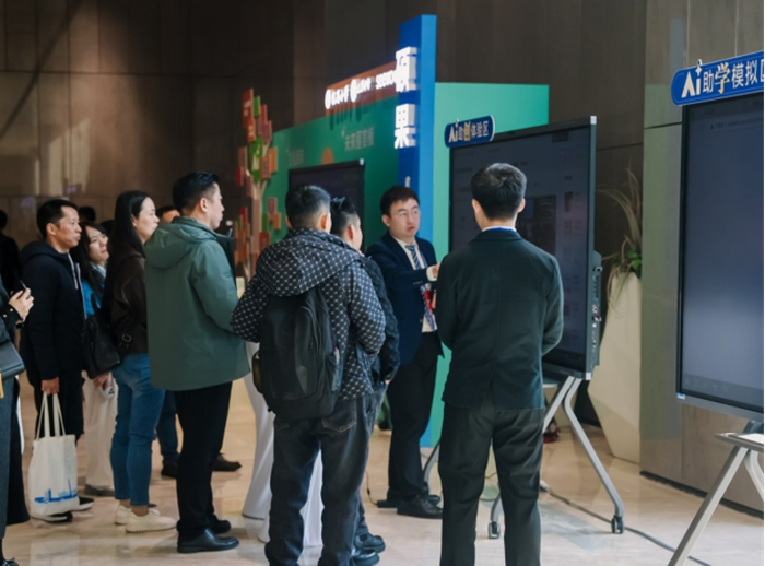 數(shù)智巴蜀展區(qū)現(xiàn)場(chǎng)觀眾體驗(yàn)數(shù)字化教學(xué)場(chǎng)景