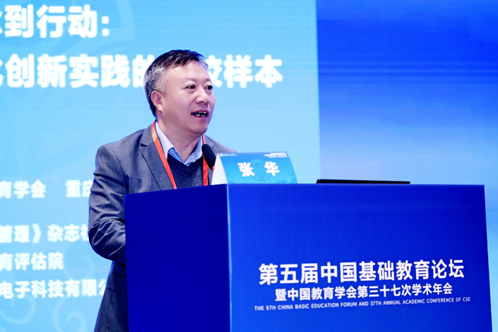 曲阜師范大學(xué)教育學(xué)院特聘教授張華則聚焦于《AI賦能的素養(yǎng)本位課程與教學(xué)》,他提出,AI技術(shù)正在重構(gòu)課程設(shè)計(jì)與教學(xué)實(shí)施的方式。他呼吁教師從“知識(shí)傳授者”轉(zhuǎn)變?yōu)椤皩W(xué)習(xí)設(shè)計(jì)師”,利用數(shù)據(jù)驅(qū)動(dòng)教學(xué)決策,實(shí)現(xiàn)個(gè)性化、精準(zhǔn)化的教學(xué)支持。