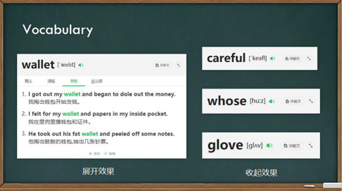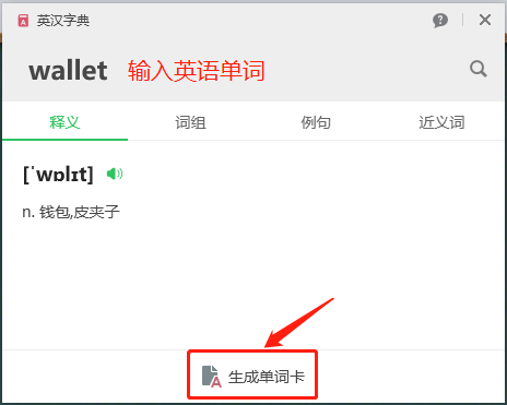 點(diǎn)擊學(xué)科工具-英漢詞典,輸入單詞,自動(dòng)生成單詞卡,來看看效果~