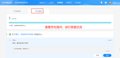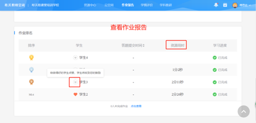 待同學(xué)們學(xué)習(xí)完畢后就可以查看作業(yè)報(bào)告啦,通過學(xué)習(xí)時(shí)長就可以大致了解同學(xué)們的學(xué)習(xí)狀態(tài),也可以查看學(xué)生的提問哦。