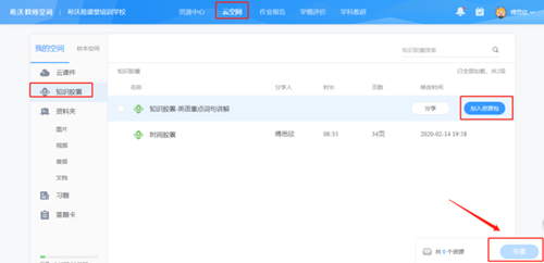 登錄希沃易課堂的教師空間,找到錄制好的膠囊,添加到資源包,布置給學(xué)生。