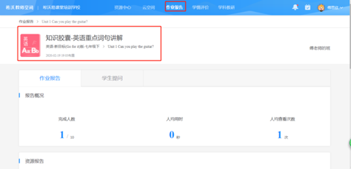 雖然我們可以找到許多的微課視頻發(fā)給學(xué)生學(xué)習(xí),但老師們才是最了解學(xué)生的學(xué)習(xí)情況和學(xué)習(xí)習(xí)慣的,老師自己結(jié)合課文內(nèi)容錄制的知識(shí)膠囊,會(huì)給同學(xué)們一種在家也可以聽老師上課的感覺,更加貼近學(xué)生平時(shí)的學(xué)習(xí)狀態(tài)。通過教師空間下發(fā)知識(shí)膠囊還可以查看作業(yè)報(bào)告,錄制膠囊-布置給學(xué)生觀看-查看學(xué)生學(xué)習(xí)情況,形成一個(gè)完整的閉環(huán)。