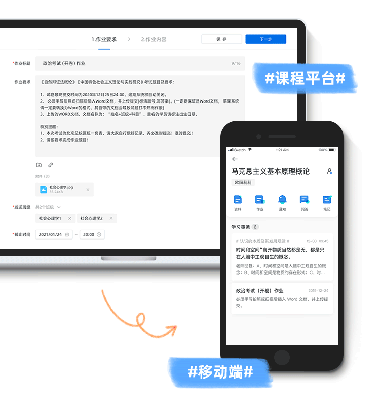 通過課程平臺老師可隨時隨地輕松布置作業