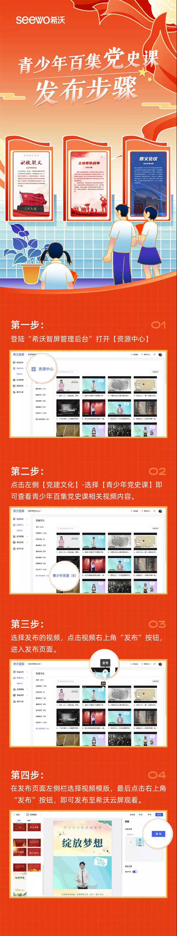 在《敬禮!我的黨——100集青少年黨史課》播出后,希沃云屏的資源系統完成了一次更新:青少年黨史課視頻資源上線了。作為百集黨史課唯一教學支持平臺,希沃將在希沃云屏內同步上架黨史課,向全體用戶免費開放資源使用權限。