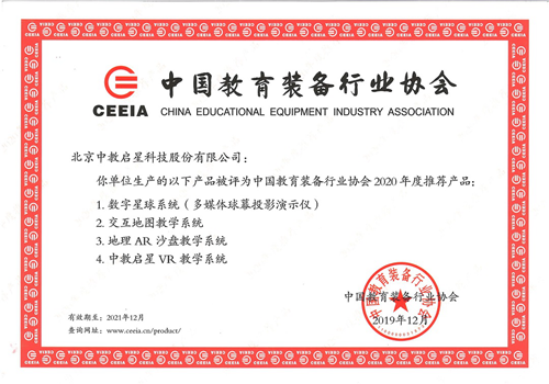 過去一年,中教啟星的VR教學系統榮獲中國教育裝備行業協會76屆中國教育裝備展產品金獎榮譽,并自動成為2020年度推薦產品審核;入選中國教育裝備行業協會第三批團體標準,成為地理團體標準制定的牽頭單位;數字星球、AR沙盤、交互教學系統獲中國教育裝備行業協會2020年度推薦產品等。