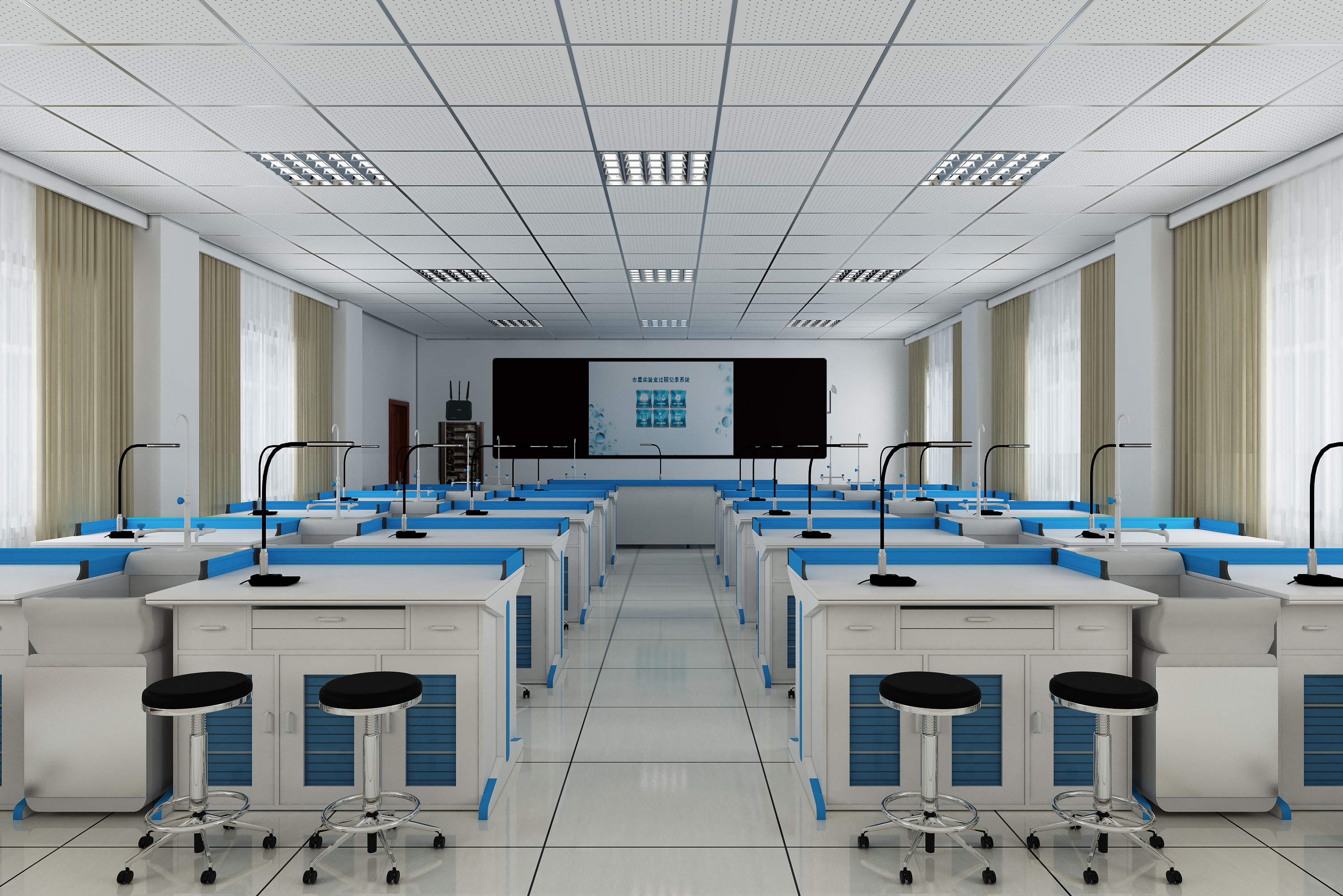 該系統不改變學生老師的傳統實驗教學習慣,支持24-48組同錄,能與交互式一體機、電子白板、投影、納米黑板等大屏設備輕松搭配,將原來傳統的實驗室升級成為全新的互動智慧實驗室,提高實驗教學效率。該方案施工簡單方便,無需布線,打開電源即可使用。