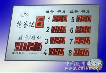 產品詳細介紹該系列產品在全國各地電視臺、工廠、機關、團體、工會、學校、部隊、行政和機關等部門得到廣泛使用。 一、性能特點: 1.本儀可允許8組(8隊)進行搶答,可訂做8組以上; 2.搶答時間和答題時間可調; 3.倒計時顯示搶答時間和答題時間; 4.顯示屏上的搶答組用高1位4英寸數碼管顯示、時間/得分用4位3英寸數碼管顯示;各組得分用3位2.3英寸數碼管顯示,采用長壽命高亮度數碼管,白天亦可進行搶答活動; 5.“搶答開始”、“有人搶答”、“搶答時間已到”均發出不同聲音作提示; 6.各組可分別進行加分或減分(加分以10分為單位,減分以10分為單位); 7.自動累計各組得分、同時顯示各組得分; 8.以閃爍方式顯示出違法搶答(偷跑)小組,并用特殊聲音告警; 9.不需電池,本搶答器的得分情況,不會因突然停電事故而丟失或錯亂。 二、產品特點: 可懸掛式顯示屏,真正led數碼管顯示(與銀行匯率牌相同,非發光二極管); 該產品做工精細,操作簡便(傻瓜化),安裝簡單(都是插頭連接). 來自國際 iso 9001 質量體系認證企業。質量好、性能優、價格廉、售后服務及時,讓您用的放心, 廠家直銷,歡迎訂購,歡迎代理 聯系電話:18959026896 陳琳 熱線QQ:587979 |