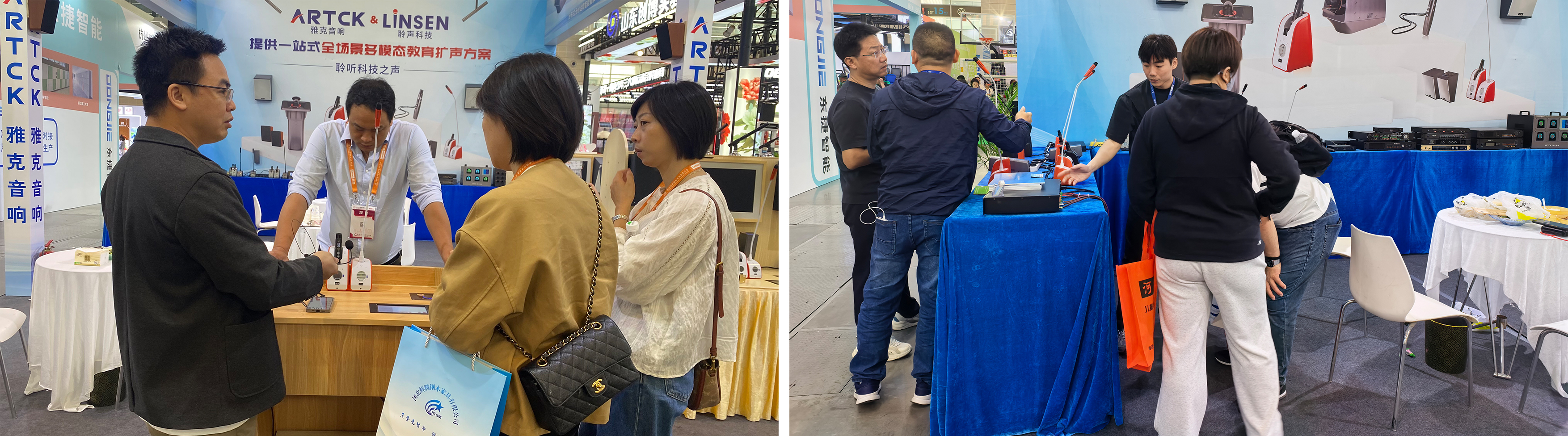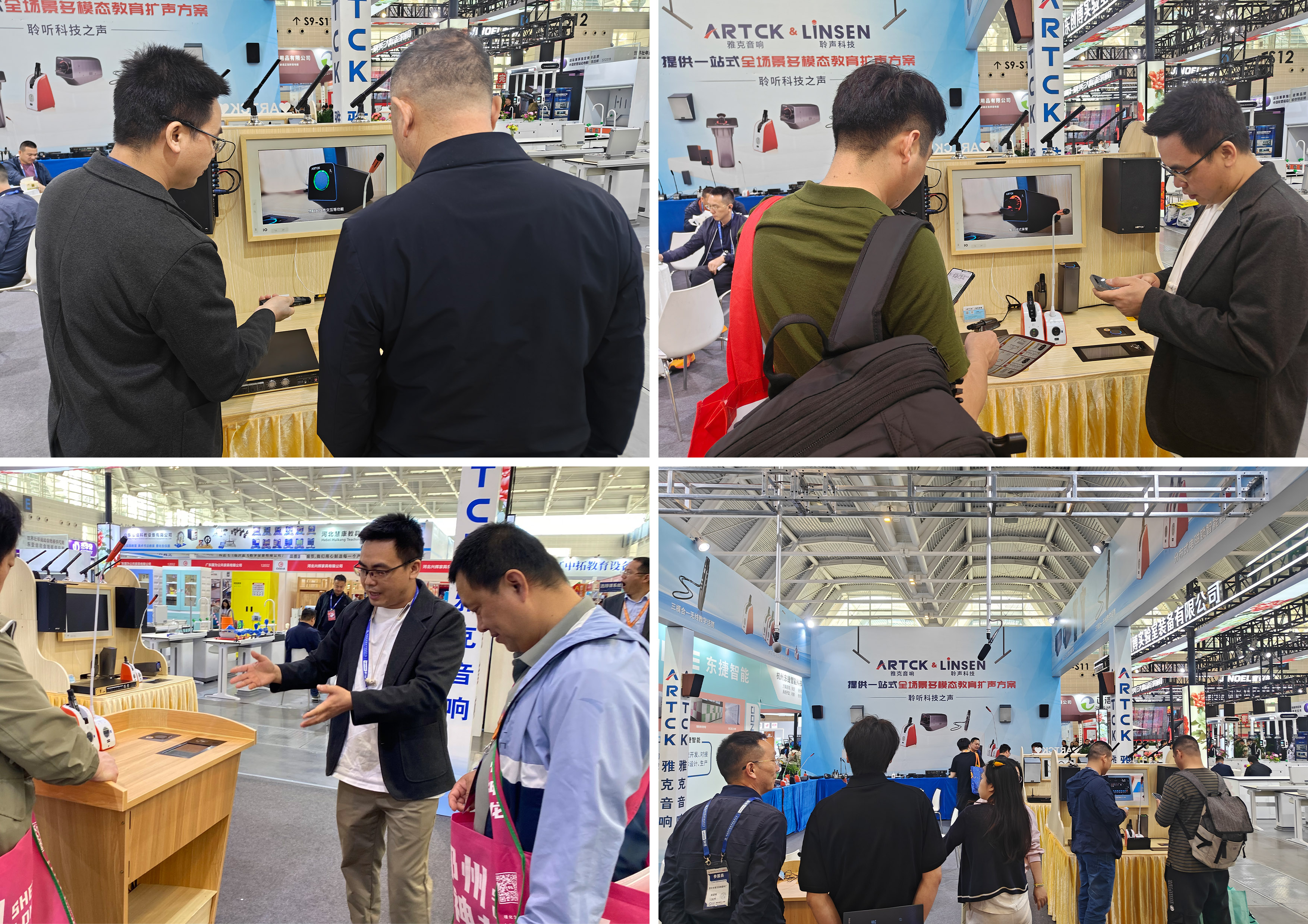 在深入了解產(chǎn)品的同時(shí)也引人深思,定制化教育擴(kuò)聲方案的推演應(yīng)對(duì)市場(chǎng)的瞬息萬變已成為破題思路。職業(yè)院校代表、一線教師團(tuán)隊(duì)、各界同仁等觀眾團(tuán)在展位上與我們高頻互動(dòng),雅克團(tuán)隊(duì)專業(yè)嚴(yán)謹(jǐn)?shù)膽?yīng)答頻獲贊許。
