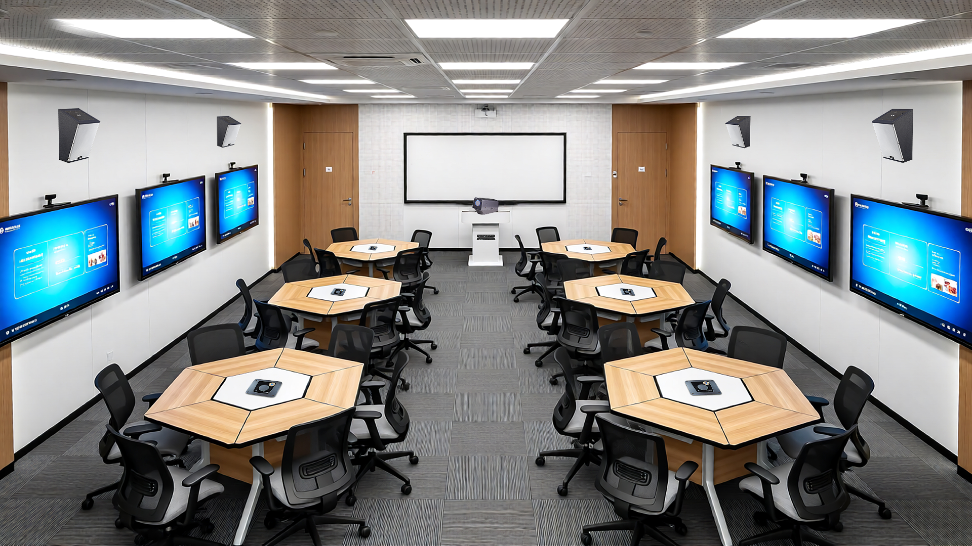 分布式無線話筒智能管家|分組研討型智慧教室場景二:機柜裝在講臺外
