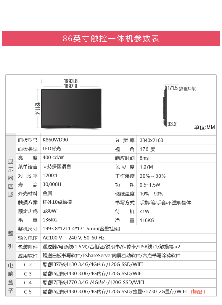 中銀科技BOCT 86寸4K高教智能觸控一體機