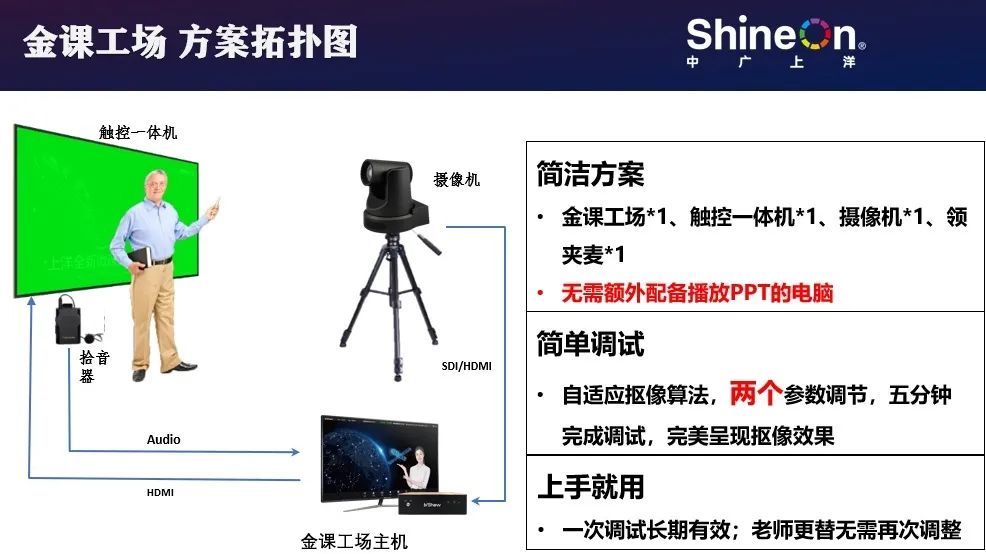 Ø 高效 – 精簡(jiǎn)流程,高效成片。無(wú)需專業(yè)燈光,不用考慮發(fā)型、課件配色,一次性快速成片。