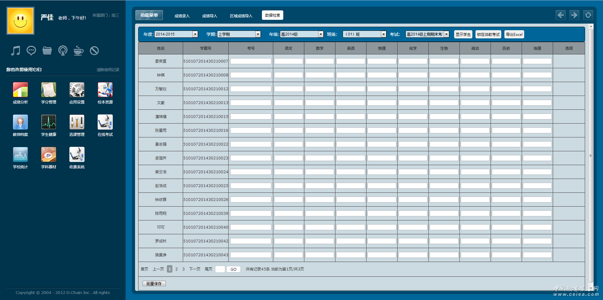 包含班主任對本班所有學(xué)生成績添加、編輯,任課教師對所執(zhí)教科目成績添加、編輯,教務(wù)處對整個年級學(xué)生成績上傳功能,還包含成績上傳模板的下載。
