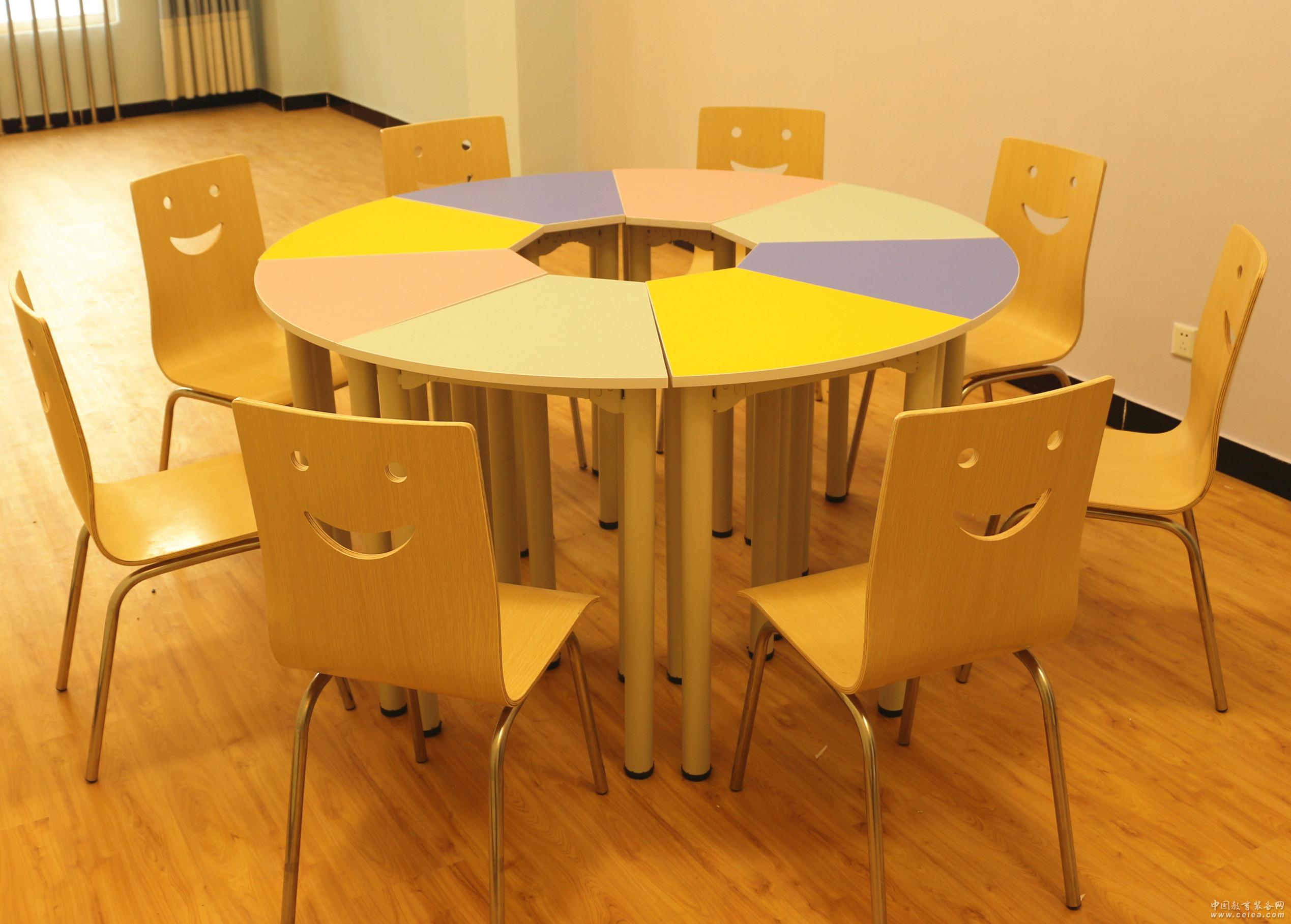 團體輔導桌,包括專用扇形桌6或8張,配以適合心理咨詢室使用的帶有微笑鏤空靠背的環(huán)保曲木椅。采用環(huán)形組合桌,6個扇形組成,6種顏色。能夠根據(jù)團體活動需要,組合成圓形、扇形、方形、S形、C形、X形等十幾項排列方式,鋼琴烤漆桌面,鋼管噴塑支持架。粉色、淺藍、淺綠等多種顏色搭配。