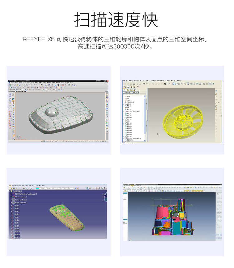 自動調節系統參數,自適應各種材質/顏色表面的不同掃描對象,無需手動調節;