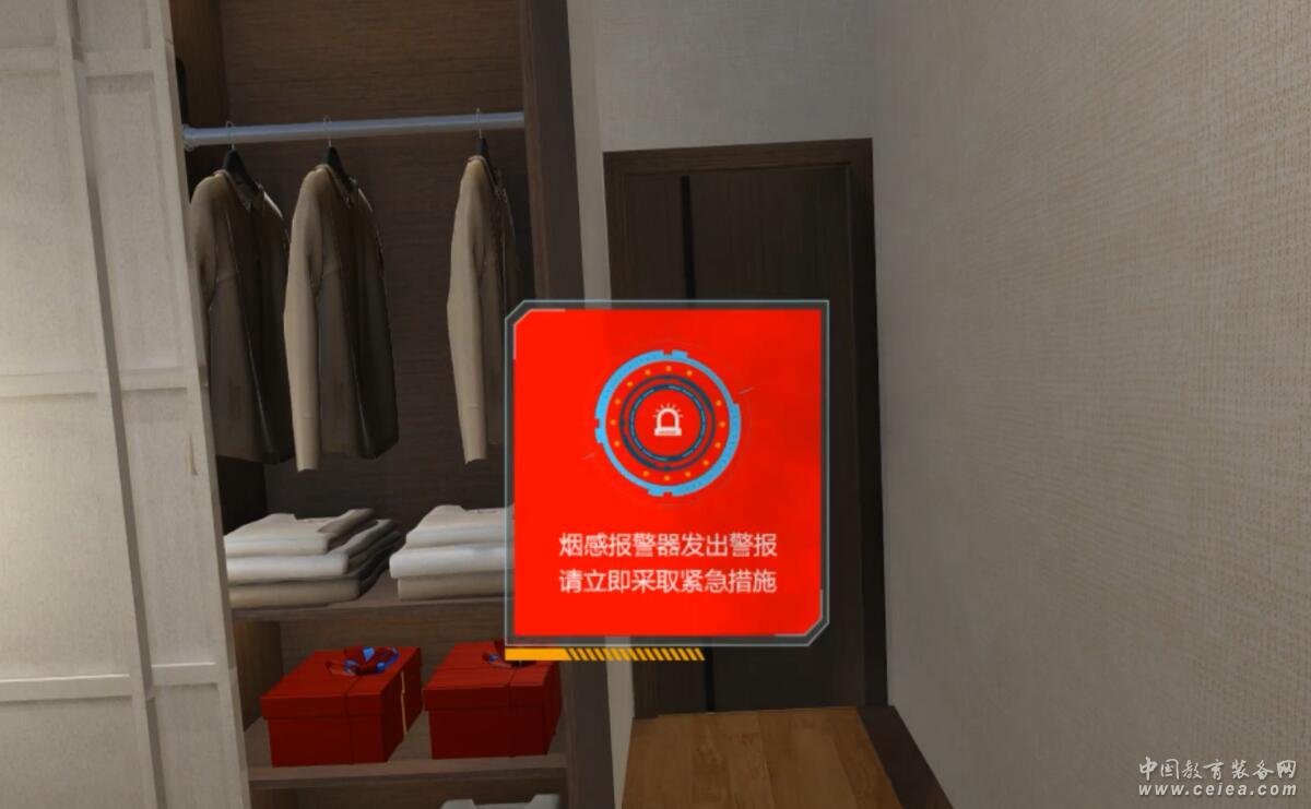 二﹑產(chǎn)品基本功能 用戶可以通過攜帶HTC VIVE 頭盔切換和移動(dòng)視角,并可以跟虛擬場景進(jìn)行交互動(dòng)作,如滅火,躲藏,逃跑等動(dòng)作,沉浸式學(xué)習(xí)消防安全內(nèi)容。 用戶可以通過VR頭盔查看文字提示和感受語音提示。