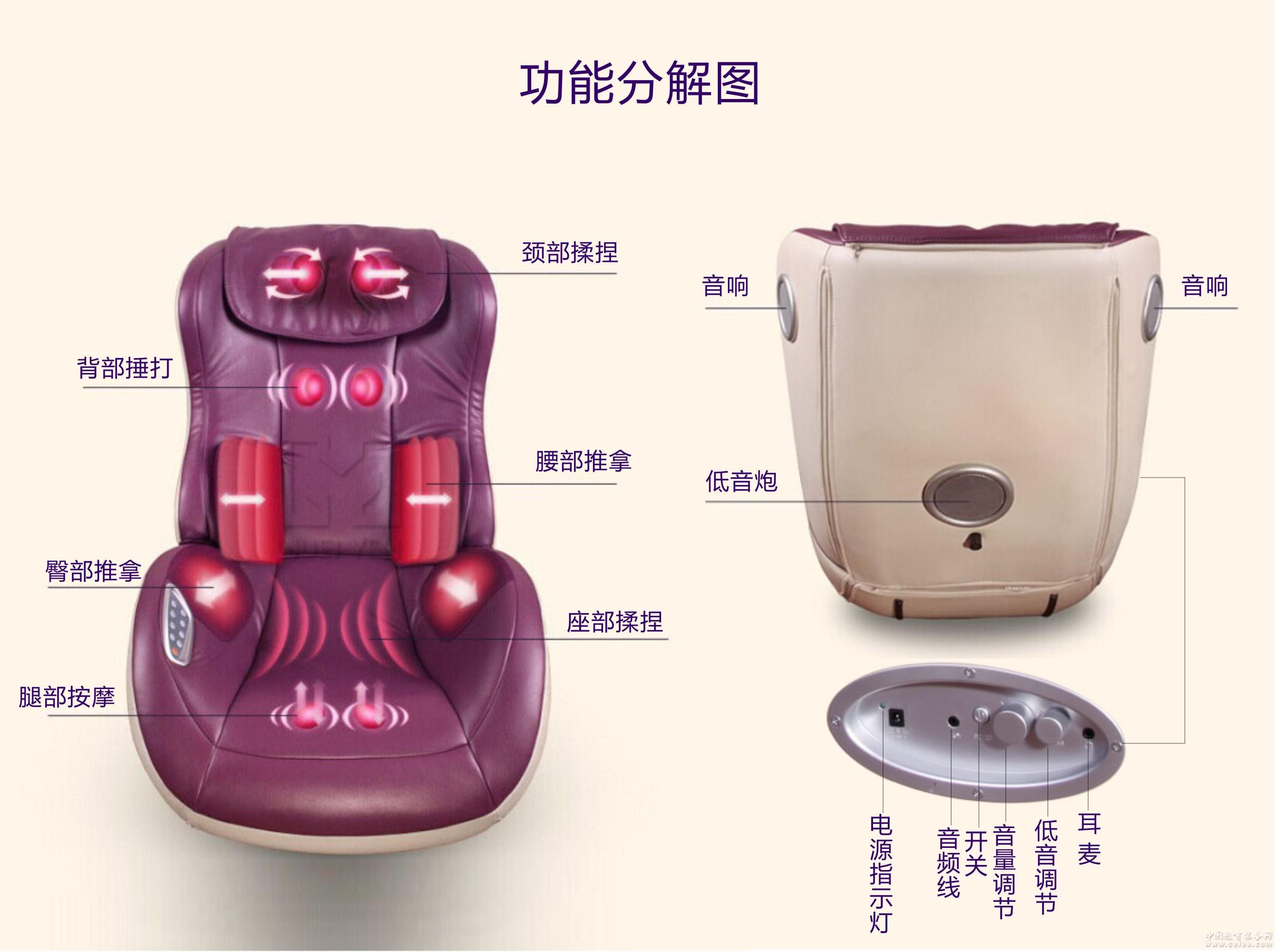 產品詳細介紹中小學不倒翁按摩放松椅 相比于成人版的放松椅,這款中小學不倒翁按摩放松椅是專門為有學習壓力或者說想以更放松輕松的心態的去學習的中小學生研發制作的。 這款中小學不倒翁按摩放松椅功能眾多,有頸部電錘捶打按摩功能,脊椎氣囊按摩功能,腰部氣囊按摩功能,扭腰按摩功能等等多方面按摩功能,能夠更好的促進全身心的放松,中小學不倒翁按摩放松椅可以舒緩學生學習的壓力,提高精神力,學習起來更輕松,更有效率和效益。并且這款中小學不倒翁按摩放松椅內置專業的心理治療音樂、心理視圖以及心理視頻資料,可以在享受按摩放松的同時聆聽美妙的音樂或者觀看放松視頻及圖片,使人在視覺、聽覺和身體觸覺上同時達到超自然放松的狀態享受。 技術參數: 1.功率:60瓦 凈重:38KG 氣囊:20個 電磁閥:8個 面料:pu 三種自動模式:開機后默認為第一種男生模式;按一下為第二種模式女生模式;再按一下為綜合模式, 2.功能:頸部氣囊揉捏按摩功能;頸部電錘捶打按摩功能;脊椎氣囊按摩功能;腰部氣囊按摩功能;扭腰按摩功能;臀部按摩功能;腳部氣囊按摩功能;進口高品質揚聲器;鑲入式平板控制;平板電腦;催眠系統(安卓版) 3.內置音樂催眠系統(安卓版) ,含有匹茲堡睡眠質量評測;愛潑沃斯睡眠量表;阿森斯失眠量表;等專業催眠量表 ,a腦波音樂搭配,可以根據不同來訪者的需要自由配上腦波音樂,可以自由配搭心理音樂和放松腦波:在普通放松音樂中間自由穿插腦電波音樂,達到為不同來訪者的不同需求和體驗;可設定放松時間,可以自由切換系統背景圖片,軟件終身免費。 4.放松圖片:錯覺圖,不可能圖,多角度圖 5.音樂放松書籍1本 6.內置專業心理音樂、心理視圖及心理視頻資料 內容如下:A視頻:催眠用搖擺鐘視頻、放松訓練教學視頻、經典眩暈視頻;太空瞎想視頻 B放松音樂:公司獨有的中醫五行身心放松音樂、音樂放松誘導訓練(可以不在心理老師指導下用來自我催眠放松)、α波腦電波同步音樂放松、純音樂放松訓練, 專業合成a波、放松指導語、大自然聲,中國風音樂,國外著名放松音樂等, 7.平板電腦,支持音樂、心理圖片、心理文章、心理電影等多種格式文件。 配置: A.不倒翁式音樂按摩1臺 B.9.7寸平板電腦1套 C.適配器1套 |