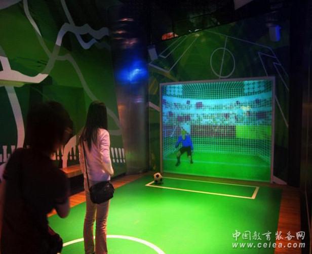 產品技術: 真人足球是智立方采用立體交互技術的成功產品,以對真人足球的運動特點仔細分析,將一個3D空間打造成為虛擬現實的足球點球禁區,實現人與虛擬環境的互動。真實射門與電腦守門員的完美結合,通過對足球軌跡的捕捉,監控,將角度,速度,坐標和軌跡信息傳輸給服務器,進行處理后,實時的反應在畫面中的虛擬足球飛射向球門,并通過運算,擬人智能守門員將模擬真實世界杯門將,做出撲救的動作。