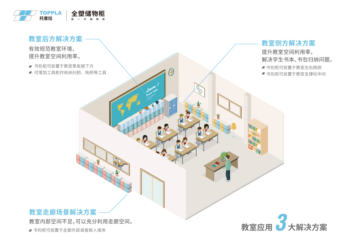 托普拉全塑儲物柜以“模塊化”為設計核心,通過內嵌式方案破解教室空間困局,兼顧實用性與安全性。