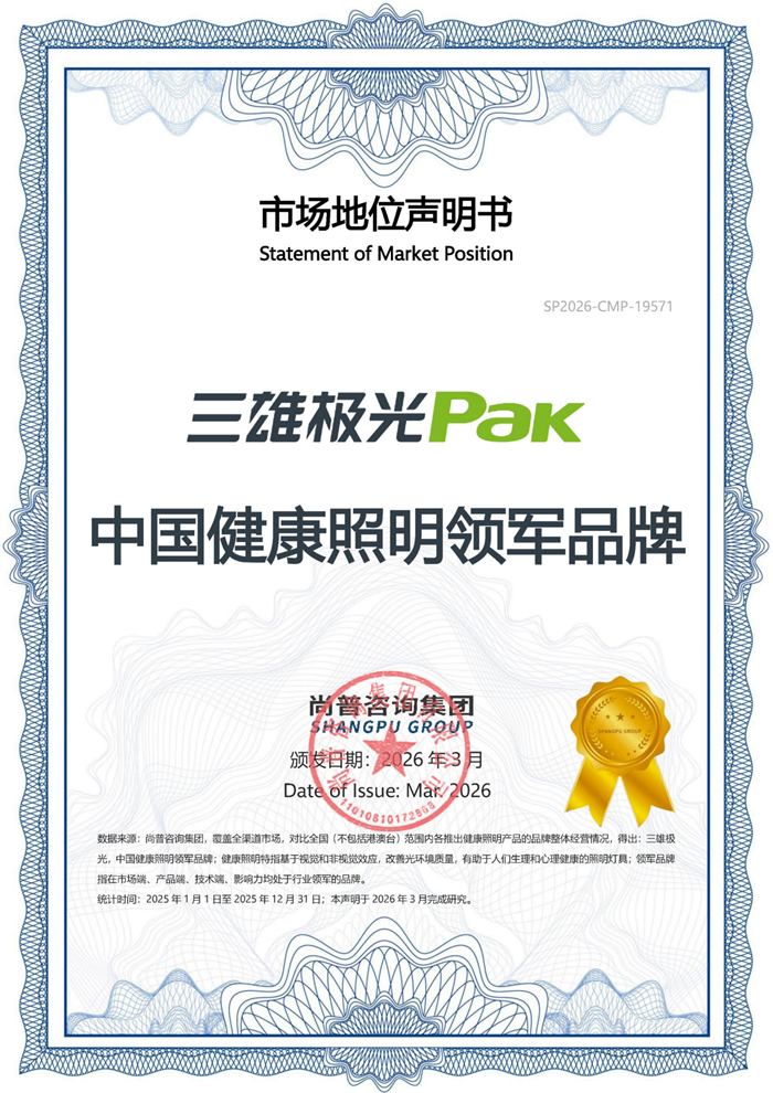 《光健康實踐與發(fā)展》藍(lán)皮書凝聚產(chǎn)學(xué)研智慧,凝練行業(yè)經(jīng)驗與科研成果,為光健康產(chǎn)業(yè)標(biāo)準(zhǔn)化發(fā)展筑牢根基;光健康2.0時代的開啟,結(jié)合三雄極光的技術(shù)實踐與行業(yè)共識,為產(chǎn)業(yè)升級指明方向。未來,三雄極光將繼續(xù)堅守初心,勇?lián)袠I(yè)領(lǐng)軍品牌使命,攜手全行業(yè)同仁并肩前行,讓優(yōu)質(zhì)健康光照進(jìn)每一個生活空間,共筑中國光健康產(chǎn)業(yè)高質(zhì)量發(fā)展的美好未來。