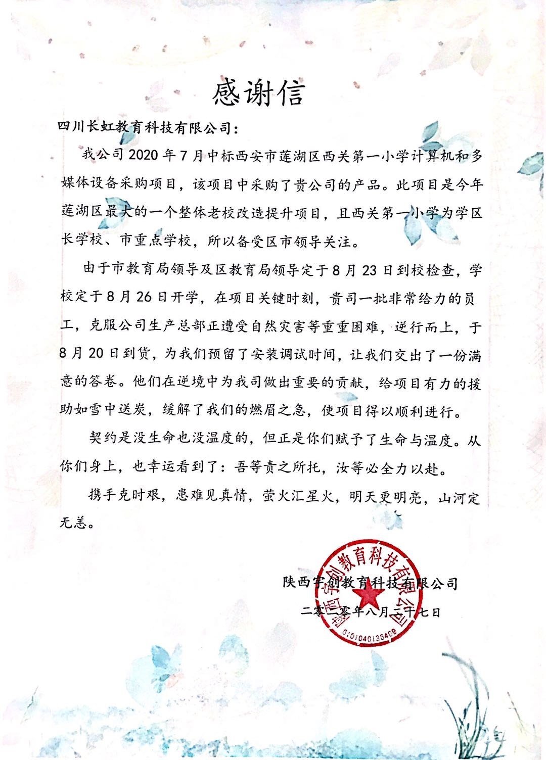 “夏天夏天悄悄過去留下小秘密,壓心底壓心底就不告訴你!”今天小編是哼著歌來的,今天的心情是特別的愉悅和歡快,快樂的源泉來自一封來自陜西的感謝信。