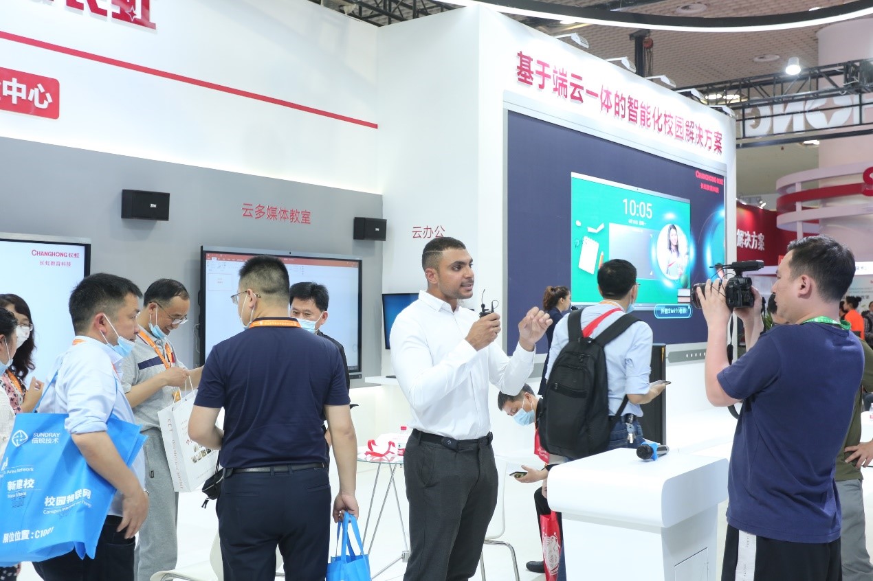 4月25日,為期三天的國內教育裝備行業(yè)規(guī)模最大、影響最廣的年度盛會——第79屆中國教育裝備展示會在廈門圓滿落下帷幕。長虹教育科技為現場觀眾獻上了一道道豐盛的新建學校整體方案的菜肴——基于端云一體機的智能化校園、云智能校園體驗中心、智慧課堂、小組研討教室、數字孿生應用,現場還有舉行了多場抽獎活動,長虹教育科技的展位人流絡繹不絕,現場氛圍熱烈。本次展會上,中文聯盟的海外留學生朋友使用中英雙語向全球推介長虹教育科技的產品方案。