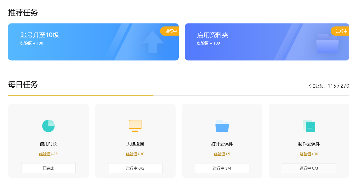信息化教學已成為老師們的常態,長虹啟課3開啟了全新的“會員成長計劃”,按照每日任務打卡,可以獲得相應的經驗值,達到一定的經驗值可以獲得云空間、專屬的課件模板、課堂活動模板等多種會員特權。