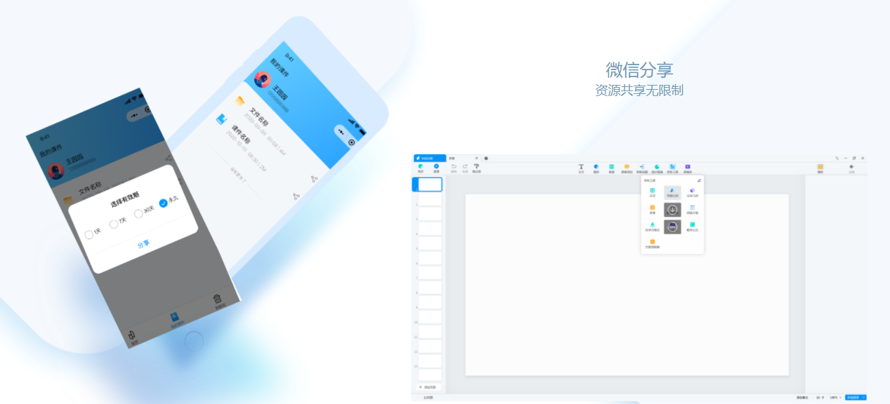 在長虹啟課3中,采用云空間和云存儲,讓每位老師都有一個獨立的賬號,每一次的登陸,空間和桌面都專屬于這位老師,習慣使用的菜單、色彩、學科模式等,都是本堂課老師獨有。課件、板書的內容可以生成鏈接和二維碼,微信、手機賬號可以直接帶走分享。為了避免老師誤刪制作的精美課件,長虹啟課3的課件刪除需要通過手機微信小程序端再次確認,才可以讓精美的課件被刪除。