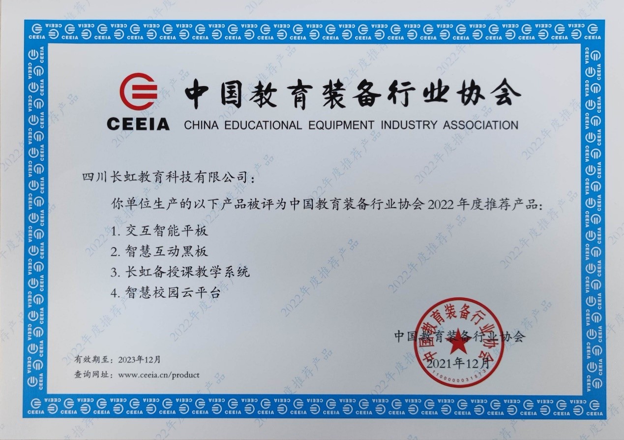 近日,中國教育裝備行業(yè)協(xié)會(huì)正式對外發(fā)布《中國教育裝備行業(yè)協(xié)會(huì)2022年度推薦產(chǎn)品名單》,長虹教育科技公司旗下的交互智能平板、智慧互動(dòng)黑板、長虹備授課教學(xué)系統(tǒng)、智慧校園云平臺(tái)等多款產(chǎn)品成功入選。