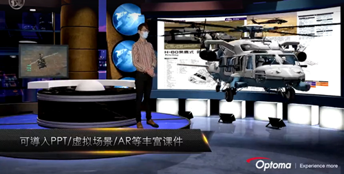 4、多路超高清影像合成:授課端可載入PPT、AR影像、背景影像及老師實時影像,并可根據需要在平板終端上使用APP控制各類圖像自由組合,在聽課端輸出相應影像;