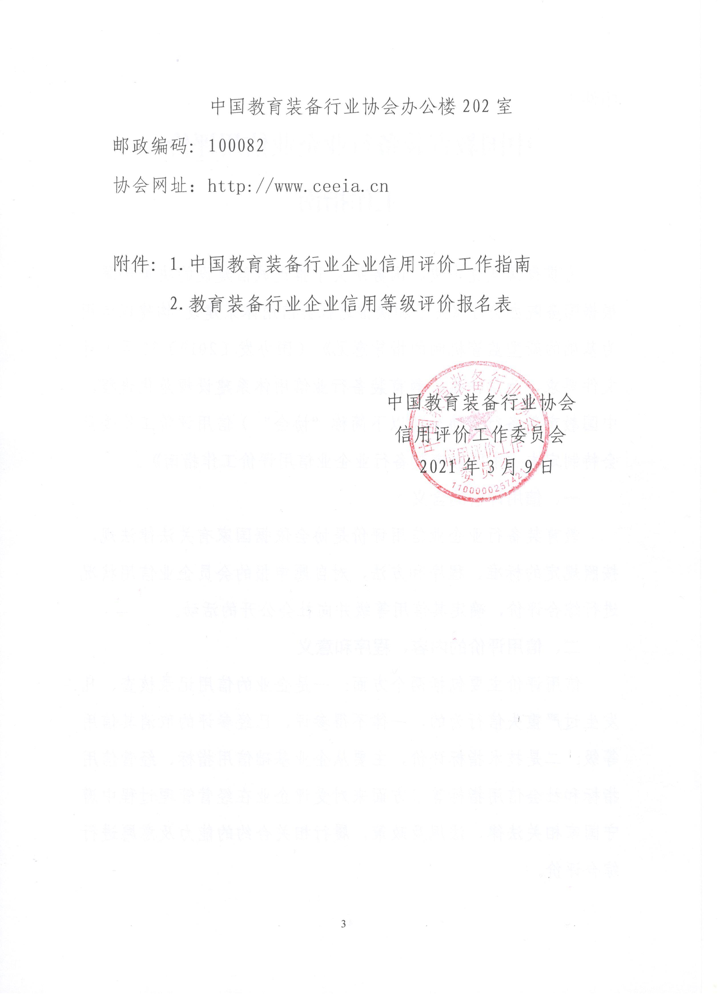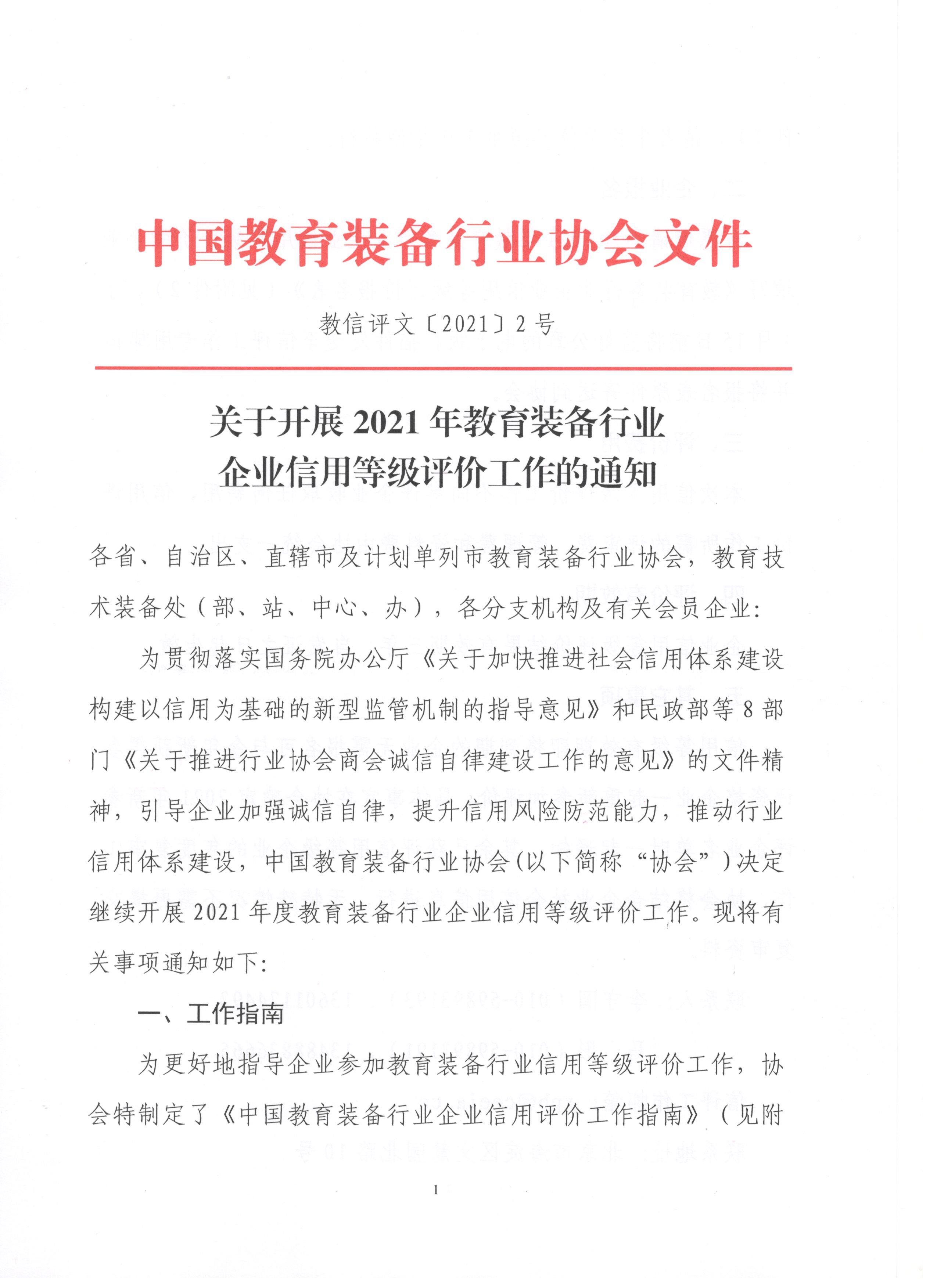中國教育裝備行業協會信用評價工作委員會關于開展2021年教育裝備行業企業信用等級評價工作的通知