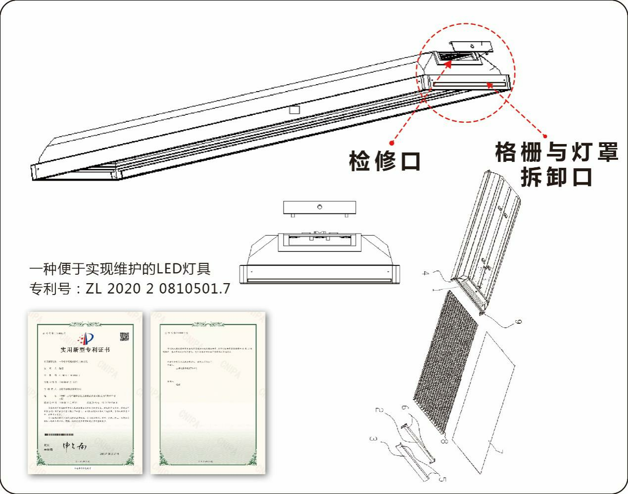 維護時無需卸下燈具,只換燈條,不換燈具,可換洗格柵