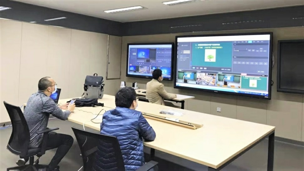 華南師大附中校領導在集控中心實時觀看名師直播教學情況